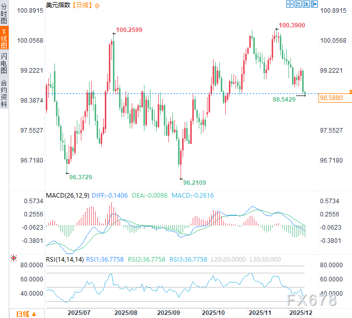 (美元指数日线图,来源:易汇通)北京时间9:06,美元指数现报98.54。