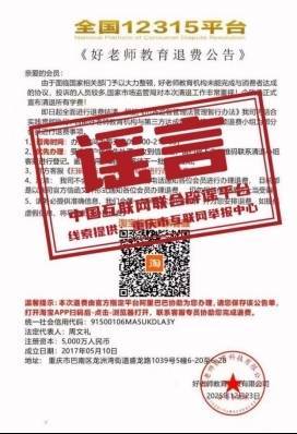 真相:近日,部分重庆市民收到“全国12315退费公告、清退会员费”的短信和图片,声称某教育机构可办理学费清退,引发关注。经重庆市巴南区市场监管局调查,市场监管部门未对公告中的企业进行所谓“清退”工作,也未发布关于该企业的退费公告。该公告杜撰不存在的法律法规名称,涉嫌冒充国家机关名义实施诈骗。巴南区市场监管局已向公安机关移交案件线索。